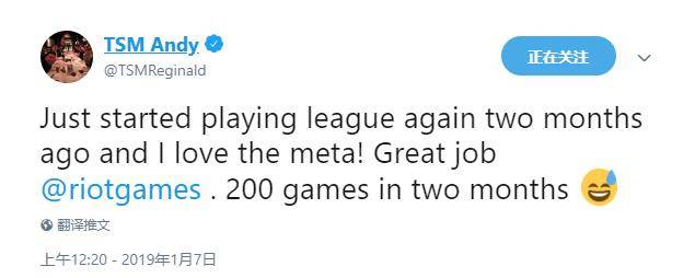 TSM老板、元老级中单选手Reginald在推特上表示自己已经重新开始玩LOL了。并且对现在的版本非常满意。