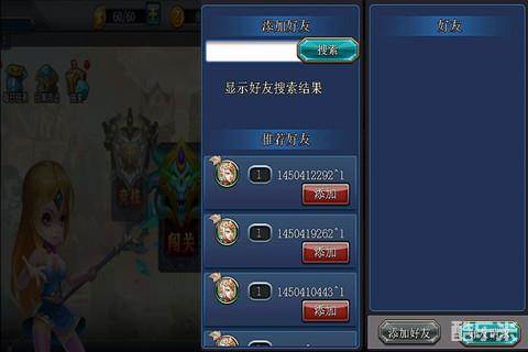 假如已经知道对方玩家的id,可以在文本输入框中可输入玩家昵称进行搜索。玩家点击搜索得到的玩家右方的“添加”按钮,可发送好友申请。点击“添加”按钮后,系统会提示“已经发送好友申请”。假如好友数目超过30则会提示“你的好友数量已达30上限!”申请发送会失败噢!这点玩家们要注意咯。