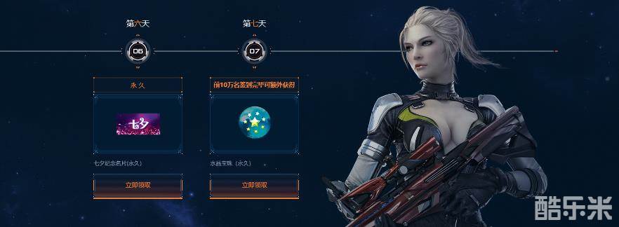 当然啦,奈良今天给大家带来的还是主要以我们的活动奖励为主。首先来给大家说一下我们的此次活动版块内容的核心奖励哦~核心奖励:五种武器道具(30天)、七夕纪念名片(永久)、水晶宝珠(永久)前10万签到完毕额外获得。