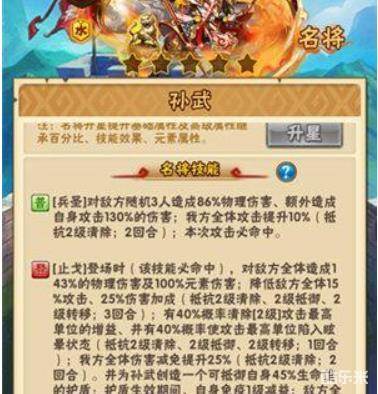 在游戏中,孙武的强力登场技能“止戈”发动时,除了可对敌方造成大量的物理伤害、元素伤害外,还可在清除敌方主力武将增益的同时,使其陷入晕眩状态,从而扰乱了敌方武将的输出节奏。