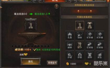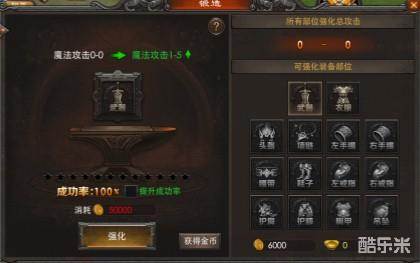 1、金币强化:通过消耗金币强化提升等级(有成功率)