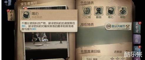 2、调整后的羸弱跟唯心都加强很多,这样就导致祭司无法去溜屠夫以及修机,只能是利用通道帮助其他求生者逃跑。在空闲的时候可以单独修一台机,虽然速度慢,但是准确率高,一个人就不用担心拖累其他人。