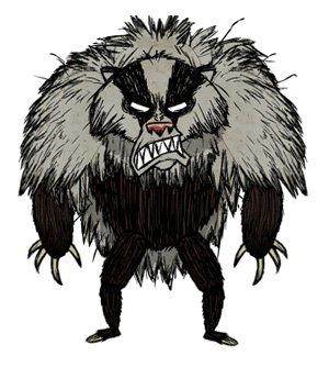 熊獾会寻找地面的一切食物,攻击附近的生物。但是它的仇恨范围比较小,但是如果在它面前捡起它的食物,很有可能会激怒它,吃货属性暴露无遗。最厉害的是,熊獾还会主动翻找冰箱和箱子里的食物。