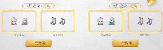 活动期间(1月1日—2月28日)登录游戏,即可参与当月对应的一元购活动。