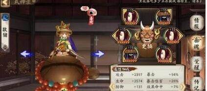 1:御馔津,生抗攻木魅,津津在斗技场上的表现算得上是非常火热了,反手控制实在是太有用了,无脑堆抵抗就可以,加一个六号位攻击主属性牌是为了能早点打破晴明的盾,津津抵抗只有135%,但在斗技场上的作用也够了。