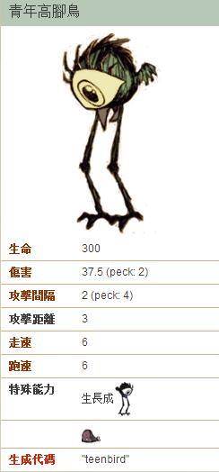 饥荒免费的小弟 青年高脚鸟属性分享