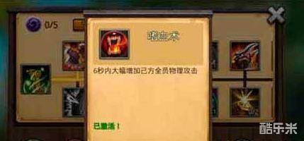 “嗜血”6秒内大幅度增加己方全员物理攻击,2点解锁。