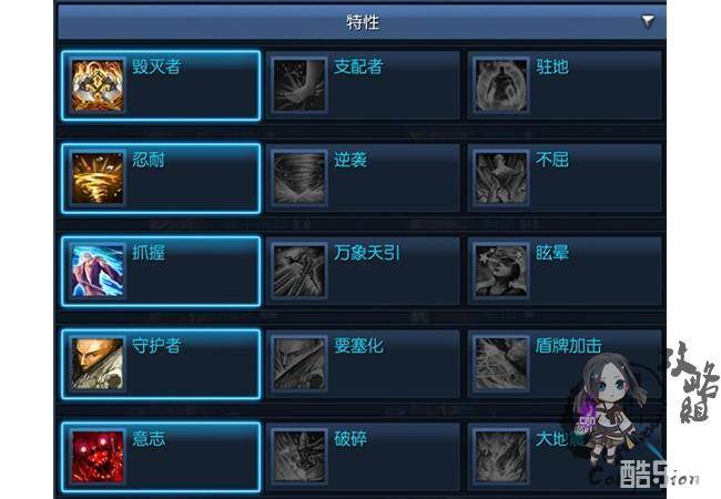 保护特性分为守护者、要塞化和盾牌加击3中修炼。