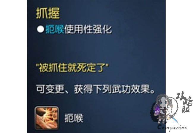 抓握的特性修炼下,力士的招牌武功之一扼喉新增扼喉期间,无畏打击每次命中时,愤怒、不屈冷却时间减少4秒;新增若是大型敌人,则在扼喉时,愤怒、不屈冷却时间初始化。无论是PVE还是PVP中,此特性都会时很好的选择之一。