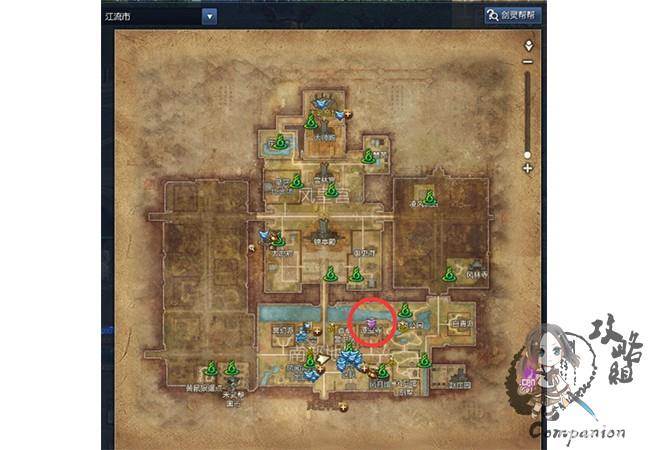 接取后提示让我们去江流市找陈苏儿,在江流市谭宝寺,地图上有紫色的任务箭头