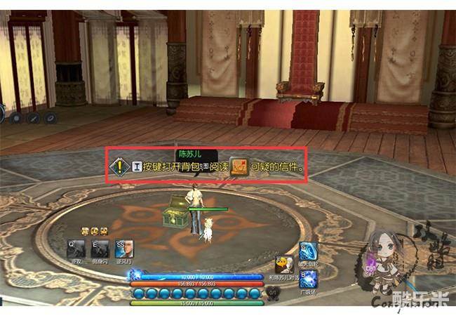 右键打开阅读,阅读后提示让我们去找地图上标识的地方,再次和陈苏儿对话后陈苏儿让我们好好看看地图;系统提示打开包裹阅读可疑的信件