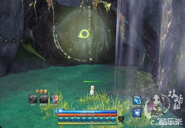 接着我们遁地前往离任务地点最近的遁地点流浪者茅屋,然后发现任务要我们找的地方在一个瀑布下面有一个副本入口