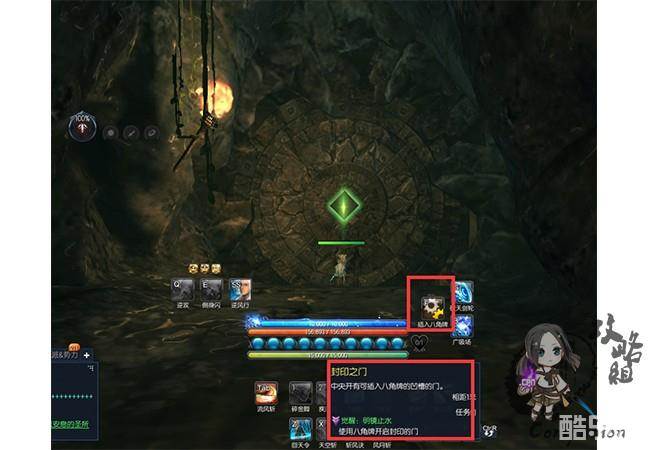 进入副本后往前走遇到一扇石门,提示我们按F插入八卦牌开启封印的门