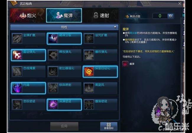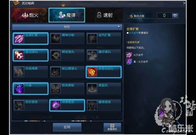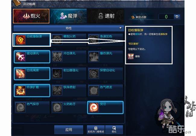 特性加点推荐爆裂弹和火力全开(无限神功/无量神功+昆仑秘功牌)