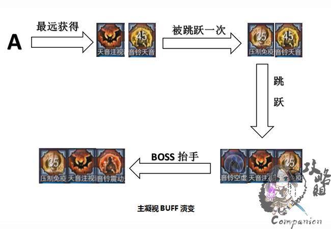 ⑤在BOSS的下一次抬手动作之后,A身上的音铃空虚BUFF变为音铃震动BUFF