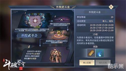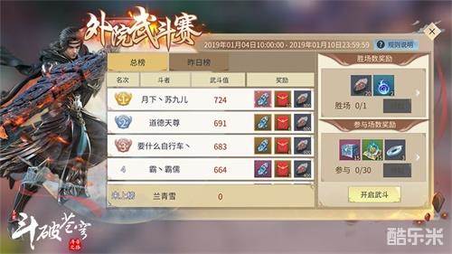 新一轮外院武斗赛在1月4日-1月10日举行。活动期间,斗者参与外院武斗会可累计武斗值,每天前6场武斗会会纳入计算。斗者们可以在指定的时间段,从活动—限时活动面板进入外院武斗会活动。斗者可通过单人或组队的形式进行报名,组队状态下将由队长进行报名参赛。需要注意的是,活动中途退出则武斗值为0并占用每日场次名额。武斗值每日上限为60分,比赛获胜、落败、击杀敌方分别增加30、10和1分,退出为0分,斗者们一定要注意。