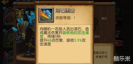 滚石重击这一个技能是英雄晶石巨兽的技能,这一个技能可以对敌方单位造成不错的魔法伤害,还可以吸收敌方英雄的攻击速度。这样就让晶石巨兽这一个英雄的攻击速度更快,也就可以在战斗中造成更多的输出。那么这一个技能在战斗中的作用是什么呢,让我们一起去了解一下。