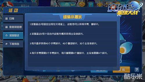 最后,需要提醒各位赛尔的是,领取完之后,多余的各肢体碎片依然还可以再次修复派鲁基达,不过每天获取的碎片也有限定。以上便是《赛尔号星球大战》机械系精灵派鲁基达的获得方式了。