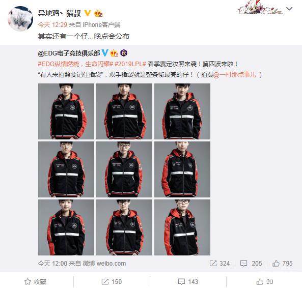 在EDG官博发完第四波定妆照之后,EDG猫叔便透露其实还有一个仔,晚点会公布。这最后一人引起了不少粉丝的猜想。