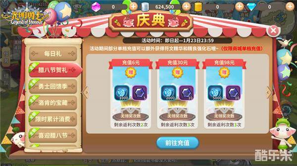 除美味的食物外,我们还为萌主们提供了许多强化道具。在活动期间,萌主们充值达到6元、30元、98元即可额外获得符文精华、精良强化石作为腊八节的贺礼。当然,每档贺礼都有对应的次数限制,6元档可以领取2次,30元档和98元档最高可以领取3次,相信这些强化道具一定能让你的实力更上层楼。
