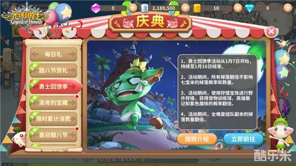 腊八活动,惊喜连连!《光明勇士》凭借唯美的画风,真实有爱的场景活动,轻松愉快的社交体验俘虏了众多玩家的“芳心”,近日上线的新版本亦广受好评。腊八活动、洛肯宝藏、勇士回馈季等活动更是奉上了海量珍稀好礼,助力萌主战力飙升!