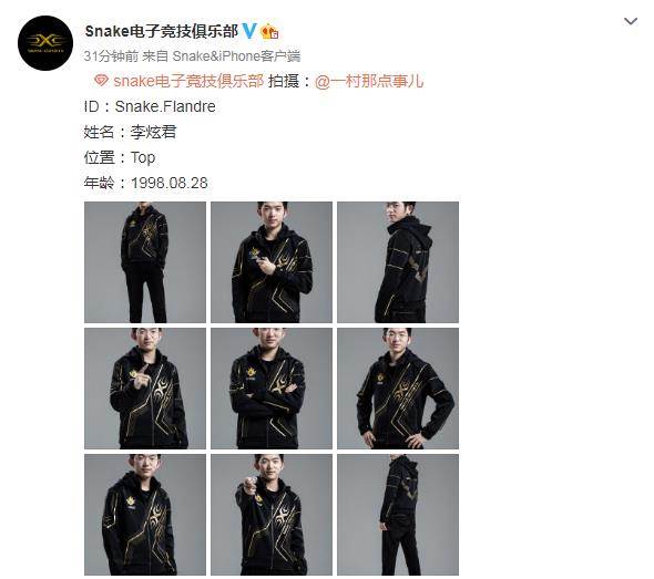今天,Snake战队公布了选手们的定妆照。