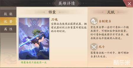 天赋发动后,苍鹭可获得糯米团子和竹叶青。其中,前者可得到护盾和生命值(持续回复),后者则能提升自身能量,并增加自身的防御输出伤害。某种程度上,苍鹭若能在战斗前服用,那么对战时必然可获取强大的输出,亦能对目标造成更多的困扰,是苍鹭 自保、打出伤害的基础.