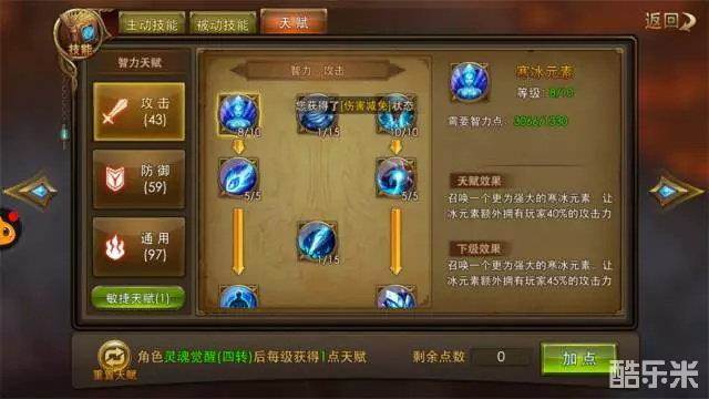 魔法吞噬:寒冰元素每次攻击其他玩家就有5%的几率自身的所有技能的冷却时间刷新,非常看脸的天赋但是只要脸好极限反杀不是梦