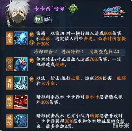 火影忍者ol手游卡卡西[暗部]技能 暗部卡卡西搭配阵容