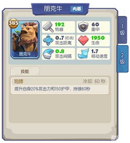 先介绍一下瑞格沃的老搭档“朋克牛”,作为一张新手肉盾牌,朋克牛适合前期发展的过渡,虽然自身血量并不是很高,但是重甲的属性和咆哮技能赋予了它150护甲加持,在前期依然能够很好的承伤。
