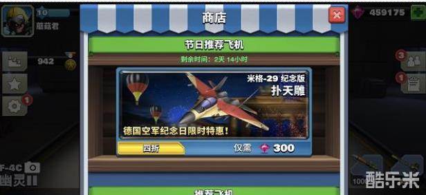 若您购买了米格-29纪念版“扑天雕”战机,赶快驾驶它来虐对手吧,一展雄姿,还有双倍金币奖励和双倍芯片在等你拿哈~就是这么任性!