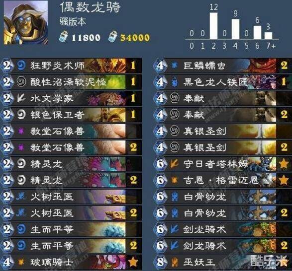 抛弃了夺尸者体系,选择了龙体系,原因在于2张卡,2/2圣盾嘲讽的教堂石像兽,以及4费5/4突袭巨鳞蠕虫,能为我们前期带来很大节奏优势,虽然这两者需要龙卡在手才可以触发,但我们也带了6张龙卡,触发效果上尚算OK,另外黑色龙人铁匠可以减费大宝剑,平常可以在手中做龙种,等大宝剑来了找时机再下,不需要担心不稳定的问题,白骨幼龙基本就是随便下,反正还能返还一张龙卡,而火树巫医则有机会找到优质法术,比如平等、奉献、圣疗、复仇之怒、萎缩射线等等。为套牌增添了不少趣味性。这套牌只要不卡没龙,强度并不比原先的偶数骑差!
