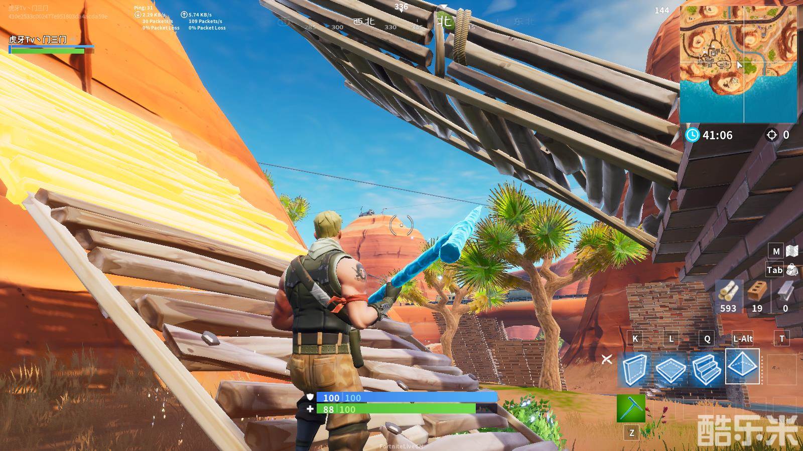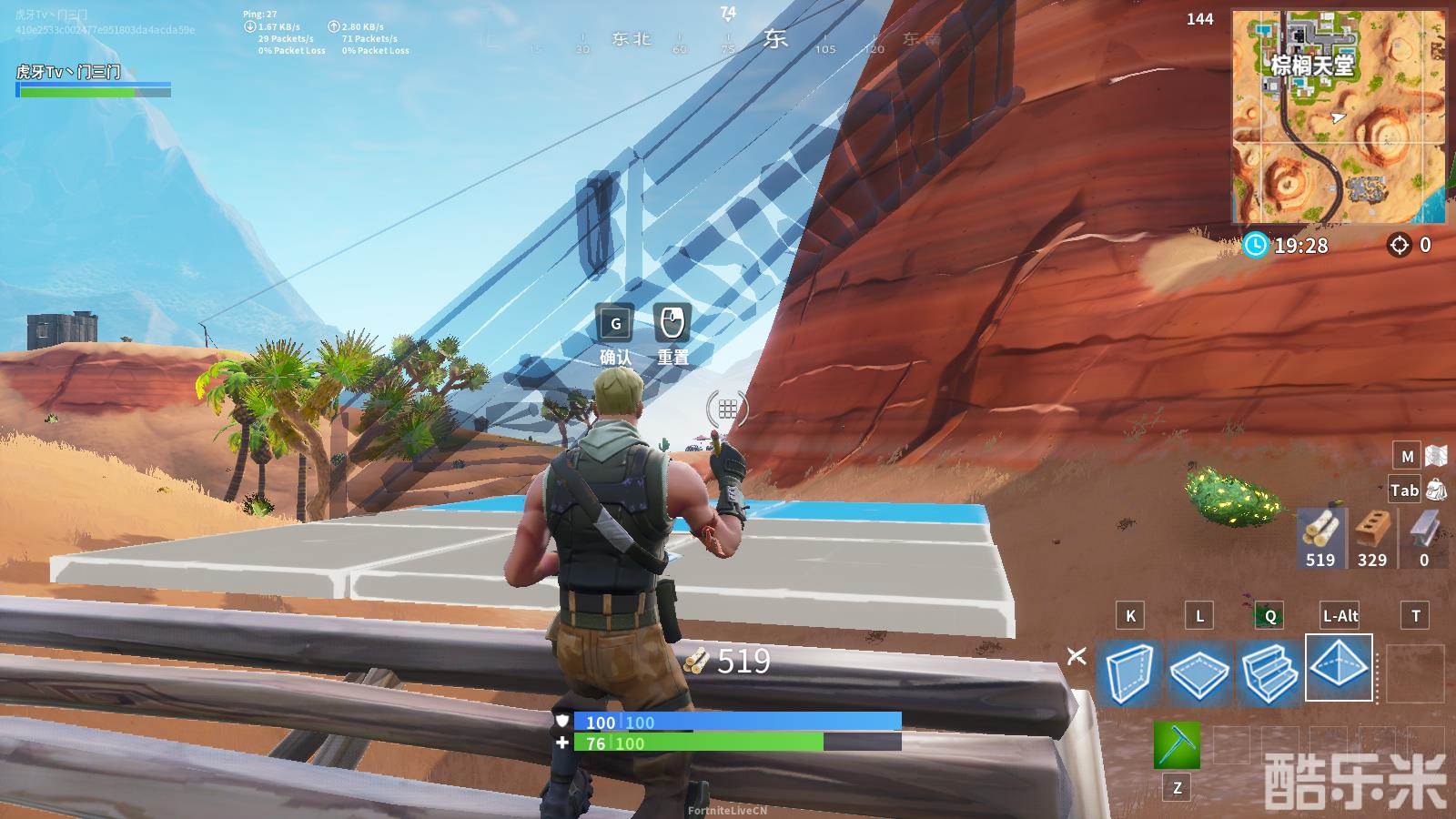 屋顶改板的前面步骤类似于第1点,只不过不是直接改板下了,而是补一个屋顶。这里的屋顶即可改板让玩家落下继续前进,也可以进行挡伤害,还可以继续改板搭高,是三门比较推荐的一种组合板。