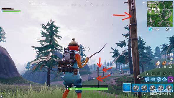 位于欢乐公园以西的野区,参考物为房子外的垃圾桶,O的标志就在垃圾桶边上。注意看下图白色角标所在位置。