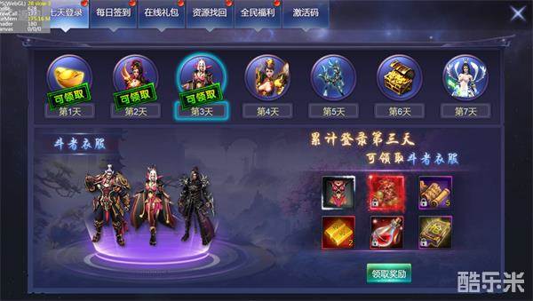 1、在奖励大厅-在线礼包标签页面,每天在线达到要求,即可领取丰富奖励。