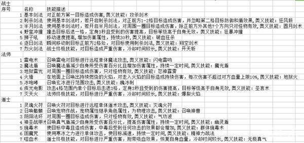 每个职业可以学习相应职业的基础斗技和奥义斗技。