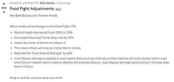 Epic Games在11月16日发布茄堡对垒玩法更改: