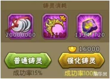 10级器灵普通铸灵15%成功率,相信我,虽然需要海量元宝,但是右边更适合你!