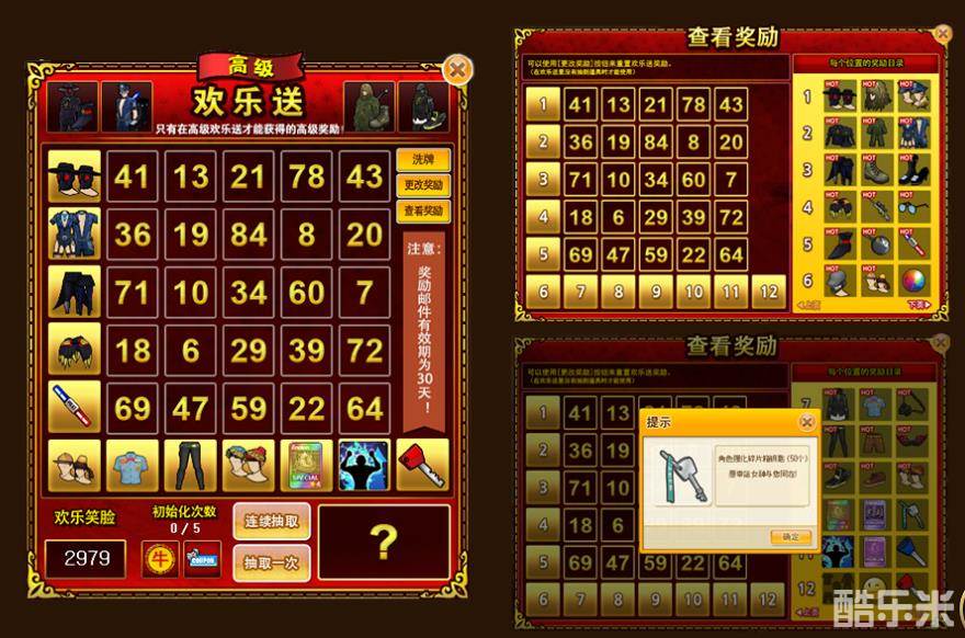 高级欢乐送将于1月10日服务器维护后长期开放,与普通欢乐送同时存在,与原先的欢乐送不同的是,每次抽取消耗10个笑脸,更改奖励消耗50个笑脸,其它规则同幸运欢乐送。新版本高级欢乐送中奖励更加诱人,除了酷炫的时限套装奖励之外,还能够抽到强化钥匙,创建钥匙,能力加强包和4星+1徽记卡等以前没有的道具。