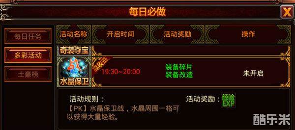 在19:30—20:00活动时间内,玩家可选择每日必做-多彩活动中的水晶保卫战“立即前往”按钮来到洛神城。