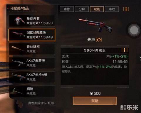 赋能每次需要500淬炼点,同样是在装备修理台——淬炼。