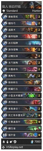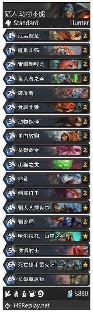 本套卡组为中速猎,慢慢依靠野兽间的配合从而不断扩大场面消耗对手血量,最终获得比赛胜利。当然在抢不下来的时候,死亡猎手雷克萨可以帮你一卡致胜。