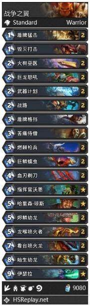 风潮:几乎在任何形态的萨满里都是一张配合法术抢节奏的卡,配合嗜血以及些许场面可以打出巨额伤害。