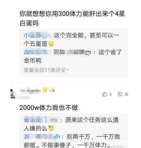 虽然是这样,不仅仅是小渝一个人说,不值得,很多网友都觉得不划算!我们的体力只有三千体力,感觉体力根本不够呀!很多网友说,两千万体力都不够肝呀!这就让人很难受呀,都觉得太不值得了。