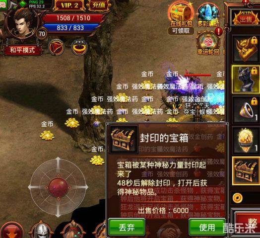 除了怪物掉落大量道具、金币奖励外,封印宝箱可开出高级材料、稀有道具等内容。