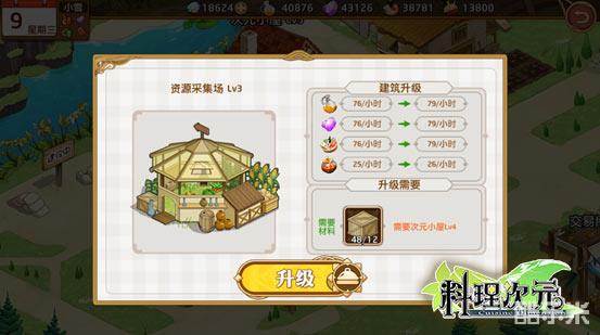 主厨还可通过升级资源采集场来加速资源产出,升级需要消耗建筑材料。