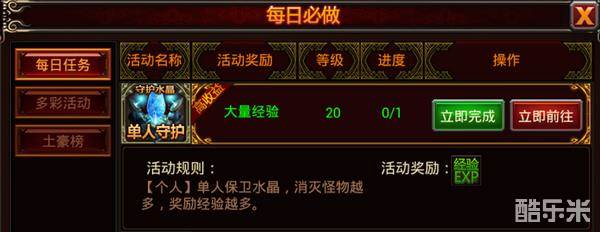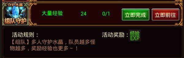 ps:守护水晶每日只能进行一次噢,偷懒或没有时间的玩家可以通过"立即完成"来获得守护水晶的丰厚经验奖励哦!
