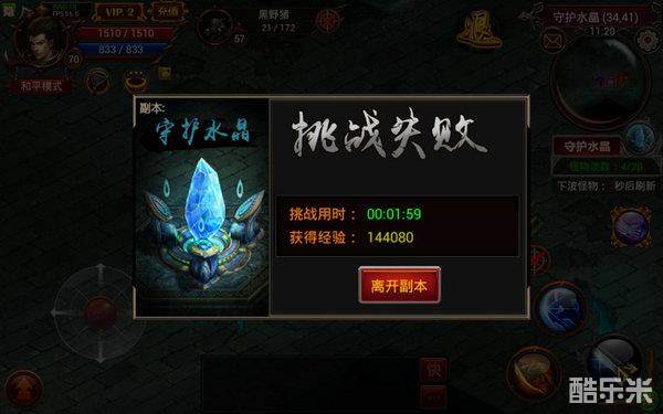 注:玩家在守护水晶活动中死亡时,不会掉落任何装备或道具,不过无法在活动中重新复活,需道士的回生术或退出副本方可复活,因此,玩家死亡时大量怪物会直接攻打水晶,导致活动失败,所以,一定要小心。