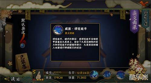 奥义技能-【威装·须佐能乎】:须佐能乎,破坏的象征!将须佐能乎当做铠甲装备在九尾身上,结合了九尾压倒性的实力和须佐能乎的极强防御力!九尾将双剑插入地面进行持续毁灭的攻击。