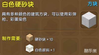 首先我们要准备些材料。需要的材料:白色硬沙块(通过硬沙块和白色颜料合成)、(硬沙块:用灰砂土煅烧获得,灰砂土常见于水中 白色颜料:通过兽骨制作)、透明玻璃块(用细沙快放入熔炼炉锻造获得)